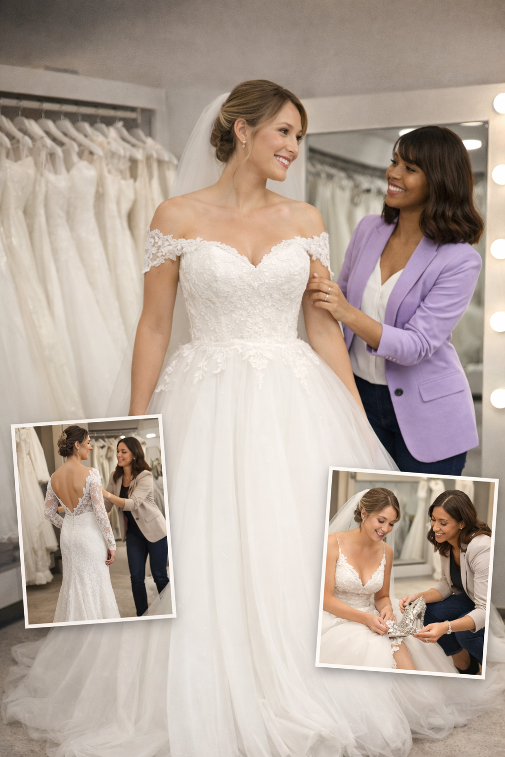 Un accompagnement personal shopper dédié à la recherche de vos tenues de mariés, afin de vous guider vers des choix élégants, harmonieux et parfaitement en accord avec votre style.